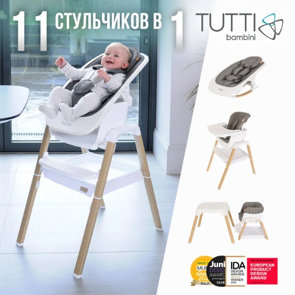 Стул для кормления Tutti Bambini High Chair Nova (Тутти Бамбини Хай Чеар Нова) - эволюционный стул - трансформер, который растет с вашим ребенком. Невероятные комбинации, которые покорят вас и вашего малыша. Стул включает в себя 11 трансформации от шезлонга с 0 до стульчика со столиком для ребенка до 12 лет. При этом все трансформации осуществляются без инструментов, легко и просто. Невероятное качество и отличное исполнение.