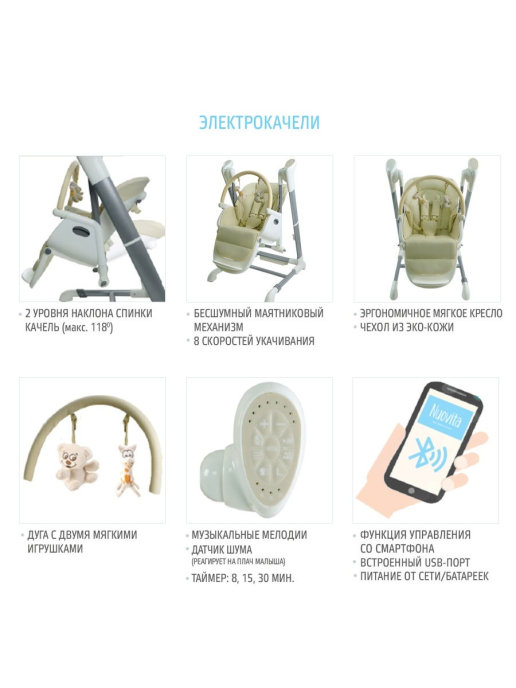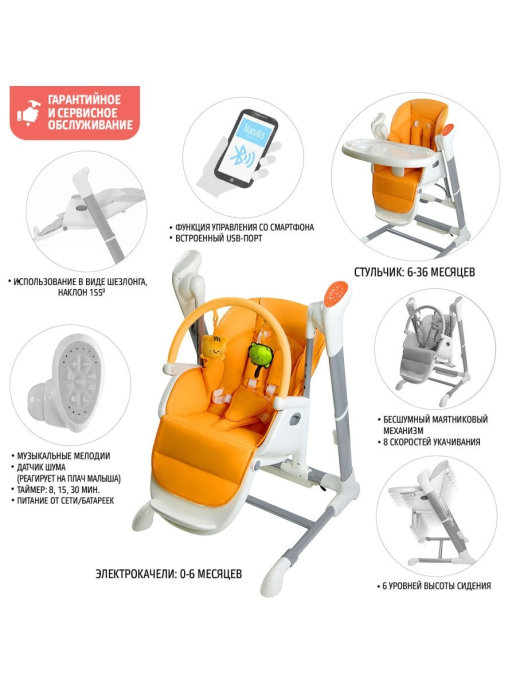 Стул -качели Nuovita Unico (нуовита Унико) – уникальный по функциональности стул для кормления, который можно использовать как качели или шезлонг. С такими возможностями как у стула Unico Вашему ребенку ни когда не будет скучно, а вы сможете заниматься своими делами. Благодаря множеству регулировок стул растет вместе с ребенком и в нем всегда будет удобно и комфортно. А за счет музыки, игровой дуги с веселыми игрушками, бесшумным маятниковым механизмом ребенку будет интересно и увлекательно. Так же хочется отметить прекрасное качество материалов, высокую безопасность и стильный дизайн.