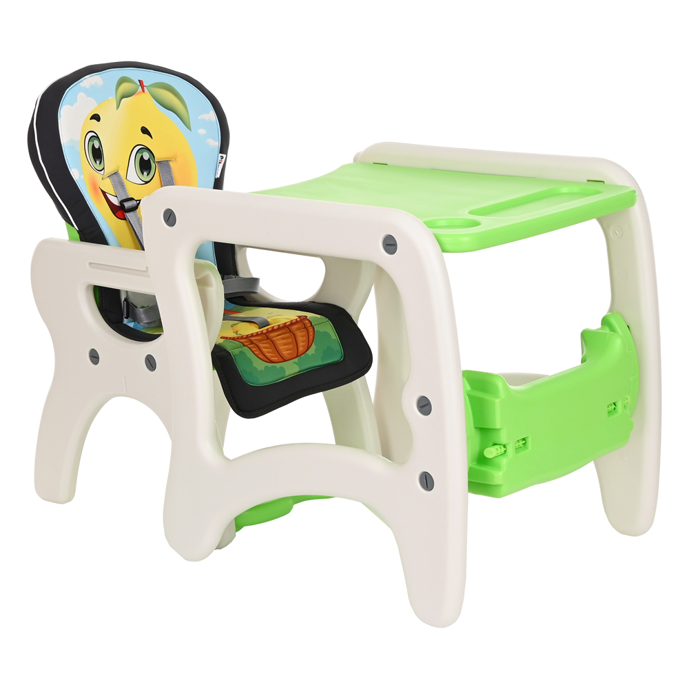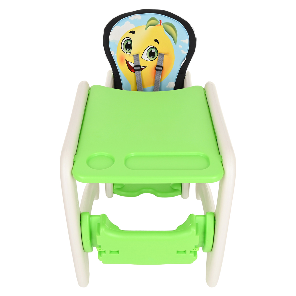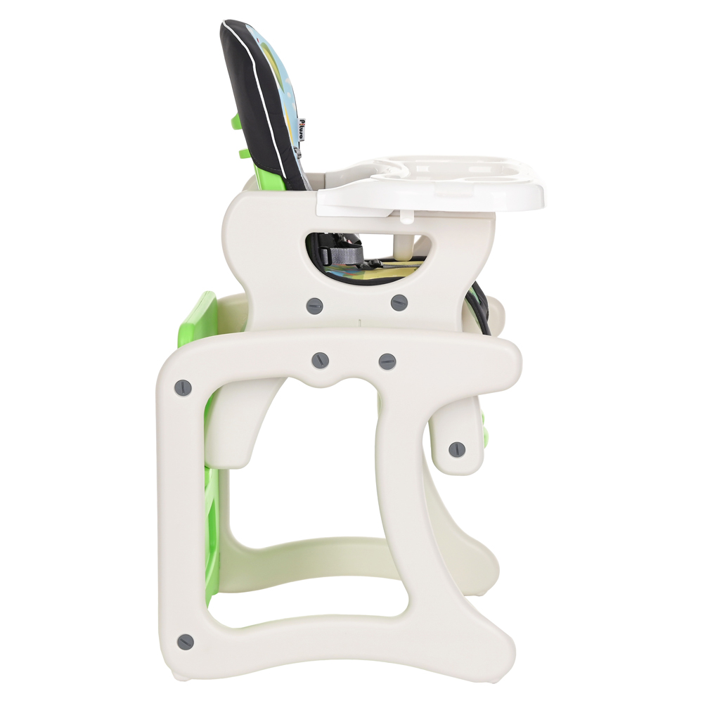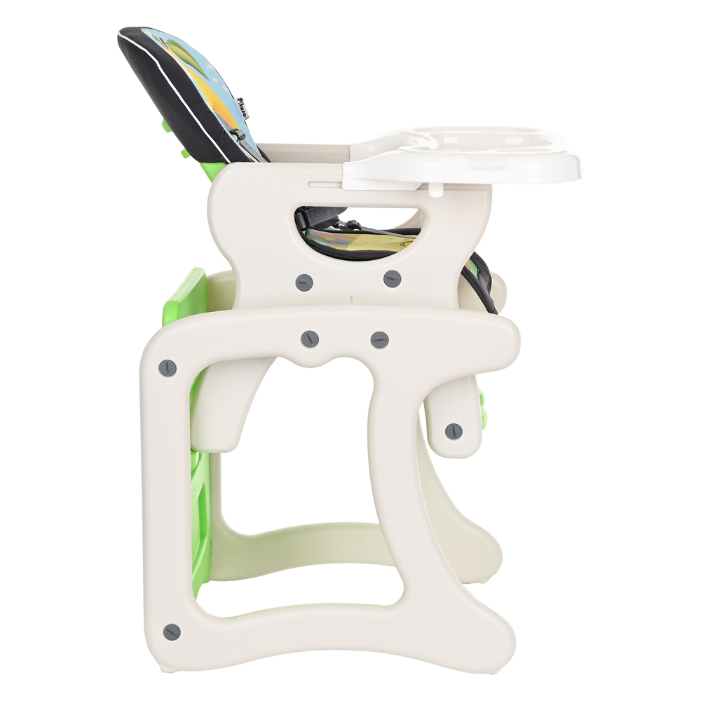 В собранном виде может быть высоким стульчиком для кормления со съемным регулируемым столиком и 5-точечными страховочными ремнями безопасности. Спинка стула регулируется, что позволяет ребенку вздремнуть после сытной трапезы. Трансформируется в отдельную комбинацию – стол + стул, за которым Вашему малышу будет интересно играть и заниматься творчеством.