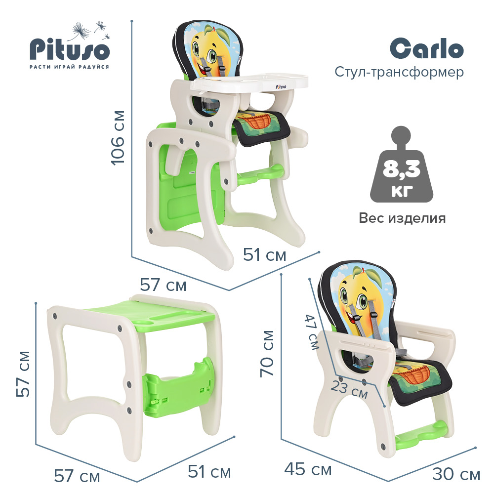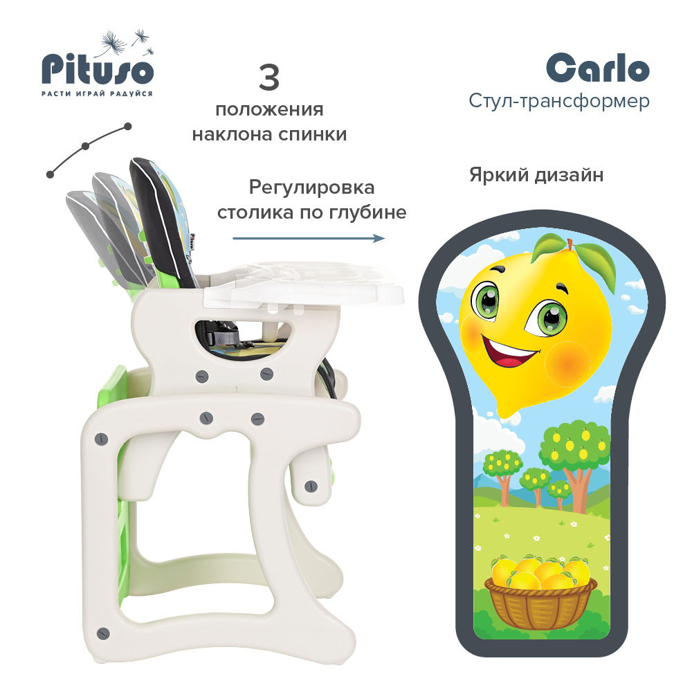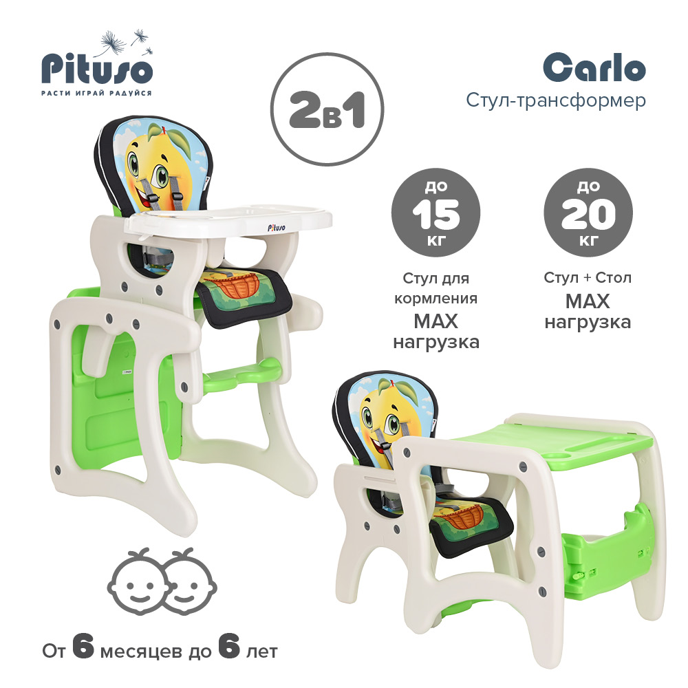 Стул-трансформер для кормления PITUSO CARLO (Питусо Карло) - представляет собой идеальную конструкцию 2 в 1.