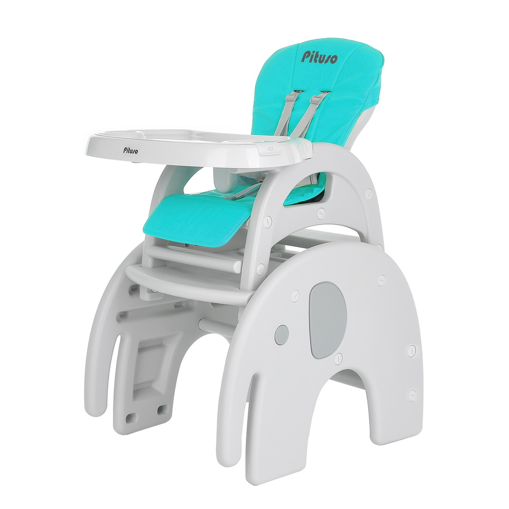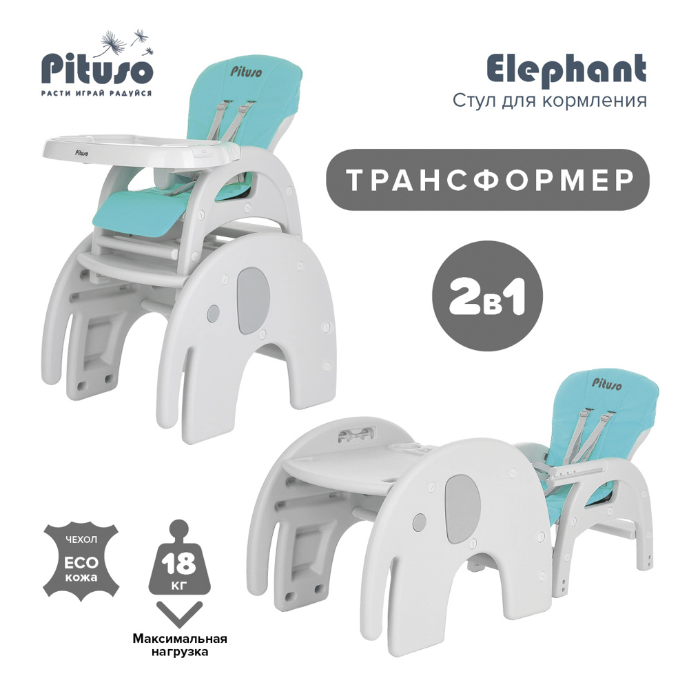 Стул-трансформер для кормления PITUSO ELEPHANT (Питусо Елефант) - стул, который растет вместе с ребенком. Основные его преимущества – это устойчивость и легкий вес. В собранном виде может быть высоким стульчиком для кормления со съемным регулируемым столиком и 5-точечными страховочными ремнями безопасности. Спинка регулируется в 3 положениях, что позволяет ребенку вздремнуть после сытной трапезы. Трансформируется в отдельную комбинацию – стол + стул в форме слона, за которым Вашему малышу будет интересно играть и заниматься творчеством.