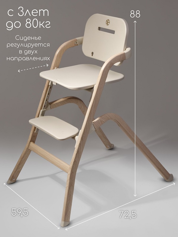 Прочный каркас стульчика обеспечит надежность и устойчивость конструкции. Металлические ножки выполнены под дерево, что придает стульчику теплоту и элегантность. На задних ножках предусмотрены колесики, которые позволят легко перемещать стульчик по дому.