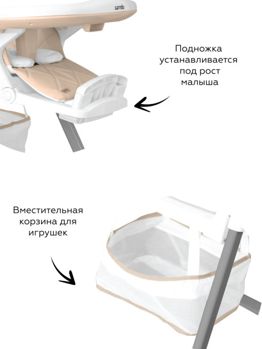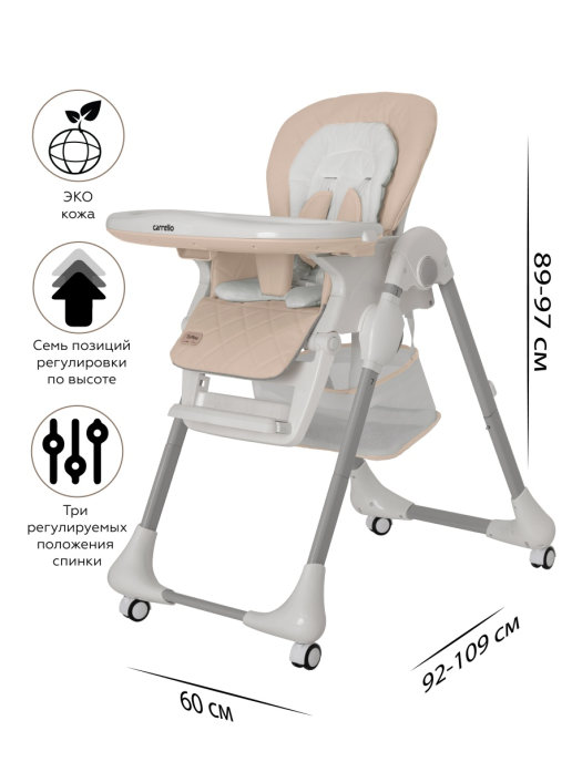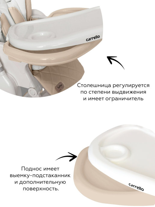 Стул для кормления Carrello Toffee CRL-9502/3 (каррелло тоффи) - современный классический стул для детей от 6 месяцев. Данная модель все необходимое, чтобы ребенок чувствовал себя в нем комфортно, а родителям обеспечена простота в эксплуатации и уходе. Стул можно использовать, начиная с 6 месячного возраста малыша, так как его конструкция является устойчивой и безопасной, как и его прочные материалы, а чтобы создать оптимальное положение для ребенка любого возраста, вы сможете воспользоваться регулировкой спинки по наклону, высоты сидения и изменением положения подножки. Пятиточечные ремни безопасности позаботятся о надежной фиксации. А съемный поднос даст возможность использовать его и как отдельно стоящий стульчик для кормления, а также приставлять его к общему столу. Колесики облегчат его перемещение, а корзина решит вопрос с хранением вещей и игрушек.