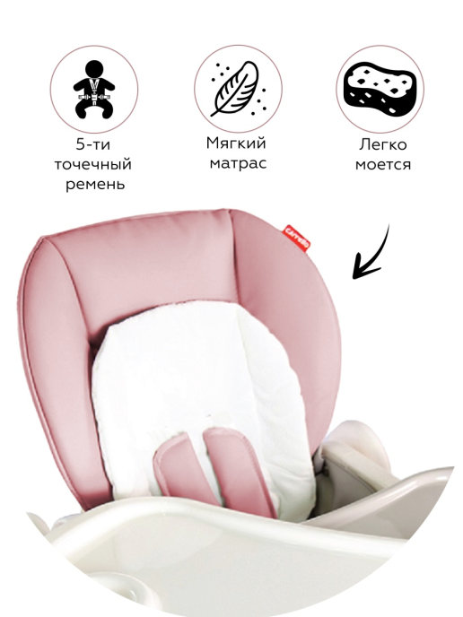 - просторное сидение, благодаря которым стульчик будет одинаково удобным как полугодовалому малышу, так и трехлетнему ребенку.