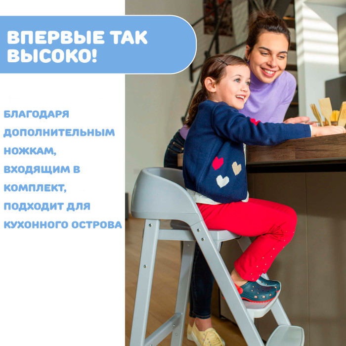 Благодаря дополнительным ножкам, которыми он оснащен, стульчик для кормления Crescendo Up также можно использовать с более высокими столами, например, на кухне.
