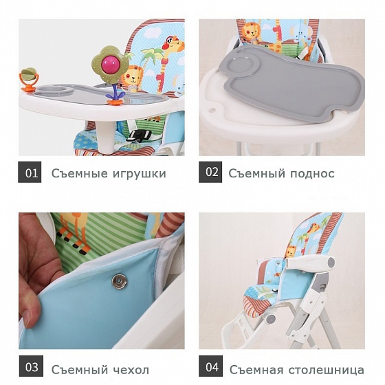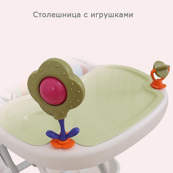 - Уже идет в комплекте с игрушками, а значит ребенку будет интереснее кушать или сидеть за стульчиком.