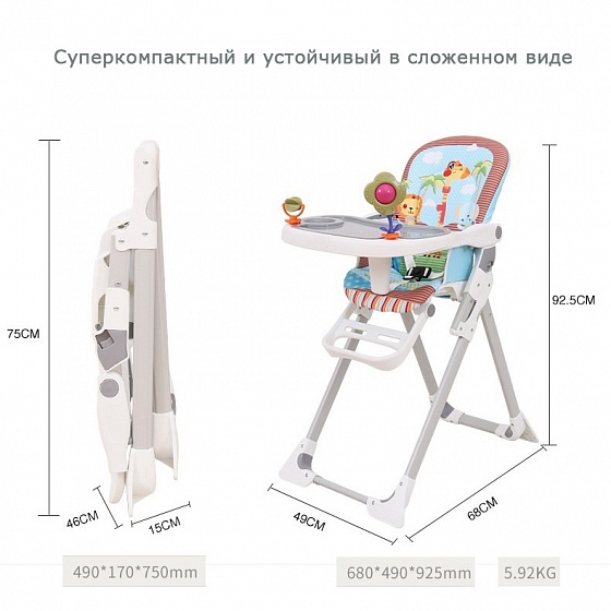 - Полноценный и удобный стул для кормления с компактным сложением.