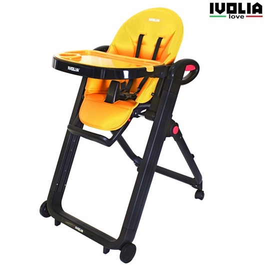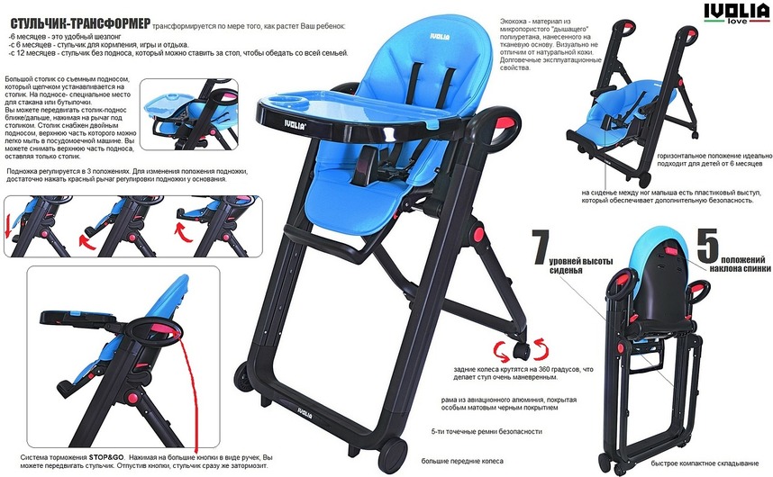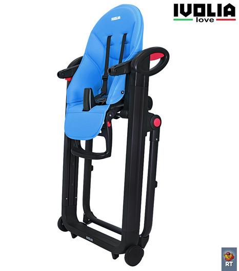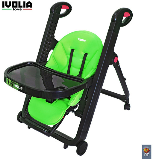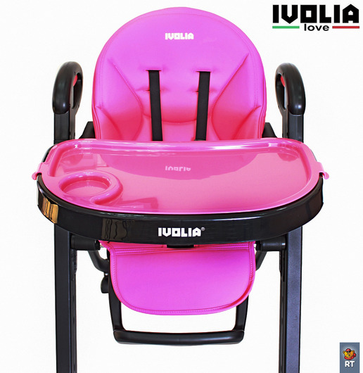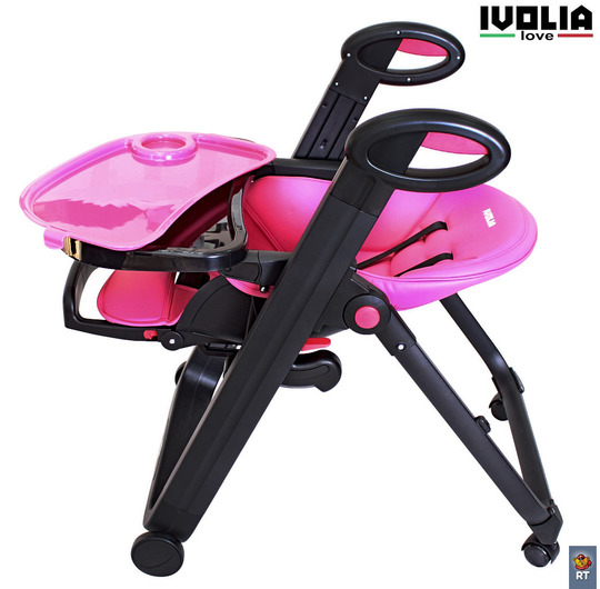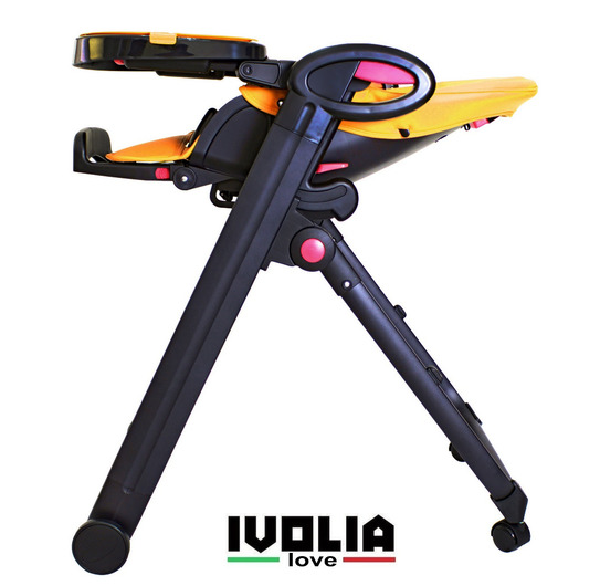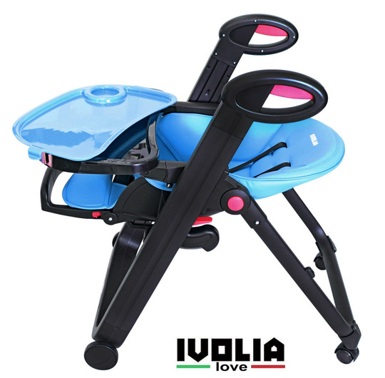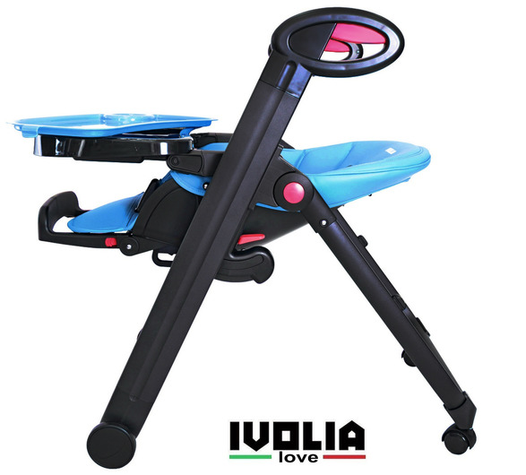 Стульчик для кормления Ivolia Love (иволия лав) – стул, рожденный в Италии, очень яркий, стильный и удобный. Стул, который можно использовать как шезлонг впервые месяцы после рождения, потому что спинка наклоняется почти до горизонтального положения. Разработанный из авиационного алюминия с тефлоновым покрытием, его невозможно поцарапать и он будет оставаться всегда как новый. Высококачественная эко-кожа будет очень приятна для малыша и сильно облегчит уборку для мамы. Ведь если тканевый чехол придется всегда стирать и замачивать от детских пюрешек, эко кожу можно просто протереть. Ivolia Love очень компактно складывается и поместиться даже в самом маленьком углу. А за счет удобных колесиков, 2 из которых поворотные , маме будет очень легко управляться со стульчиком.