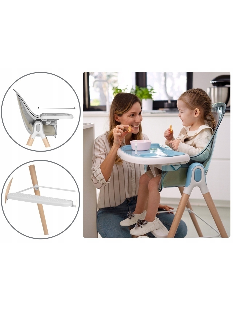 - Двойной регулируемый поднос, можно мыть в посудомоечной машине