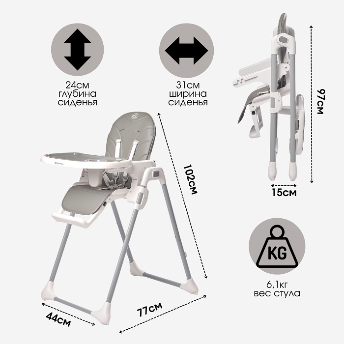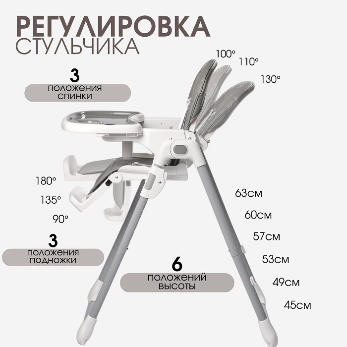 - Регулируемый по глубине, съемный столик с дополнительным съемным подносом, который удобно мыть после еды.