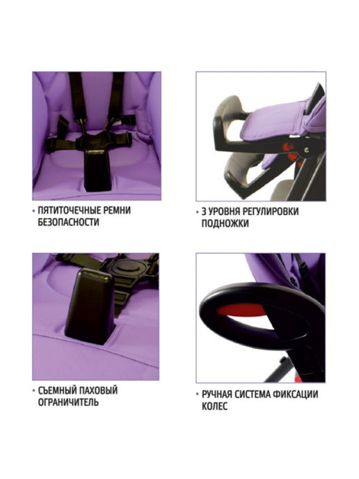 Безопасность малыша в стуле обеспечивается правильной и устойчивой конструкцией, надежными 5-ти точечными ремнями.