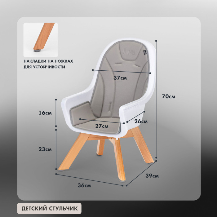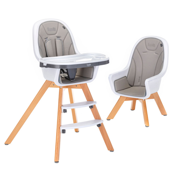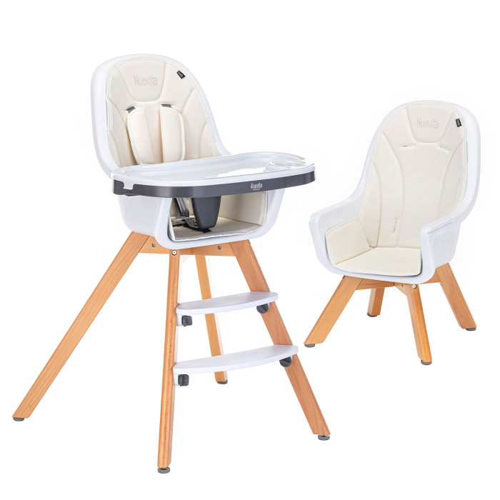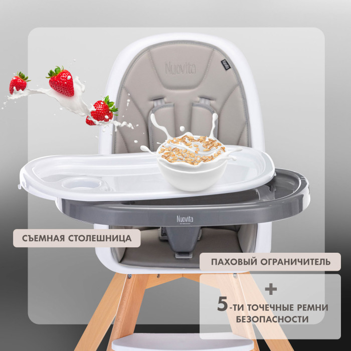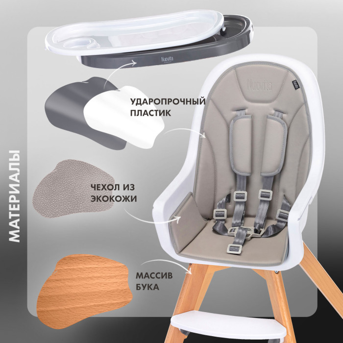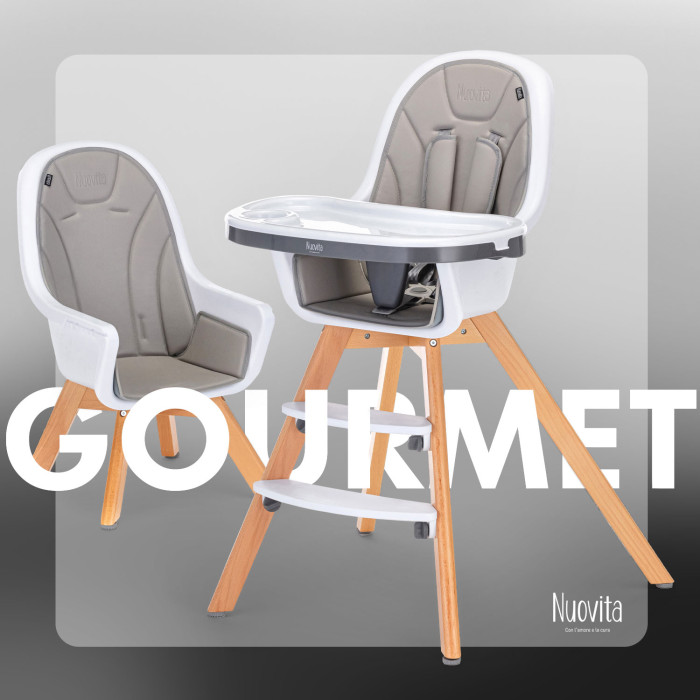 Стул Nuovita Gourmet (Нуовита гурмет ) - стильный стульчик для кормления ребенка от 6 месяцев, который отличается компактными габаритами и очень практичен. Стул представляет собой противоударное пластиковое сидение с ремнями безопасности и съемным столиком с подносом, регулируемые по высоте ножки из бука и качественный мягкий чехол из эко кожи.