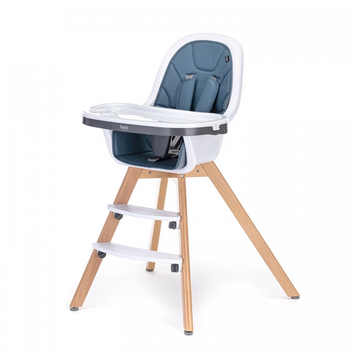 Сидение имеет удобную эргономическую форму и высокие подлокотники. В нем не предусмотрен наклон спинки, поэтому рекомендован для детей которые уже могут самостоятельно сидеть. Для безопасности крохи в стуле предусмотрены 5-ти точечные ремни безопасности, а так же стопор ограничитель на столике для кормления. Вся обивка съемная и легко стирается. Сам стульчик легко протереть или помыть в ванной комнате. Чтобы ножки ребенка не висели во время кормления, предусмотрены 2 подставки под ножки. Для кормления ребенка предусмотрен удобный столик с дополнительным съемным подносом. Столик регулируется в нескольких положениях по глубине для удобства ребенка.