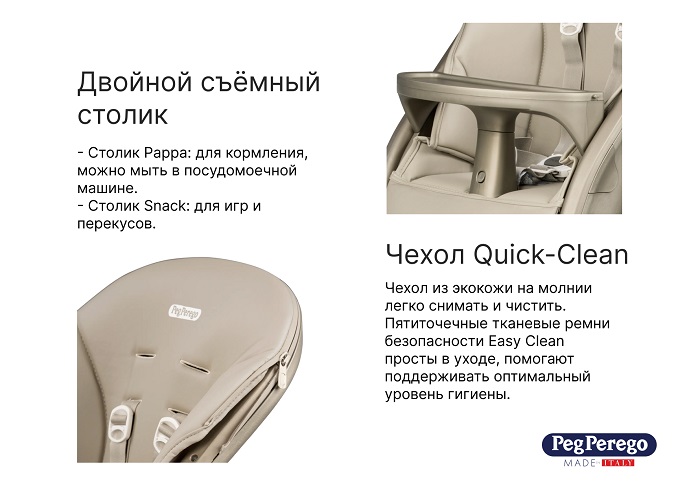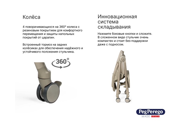 Наш магазин является официальным авторизованным продавцом товаров Peg Perego в России. Покупая у нас, вы получаете качественные и сертифицированные товары, официальную гарантию и официальное сервисное обслуживание.