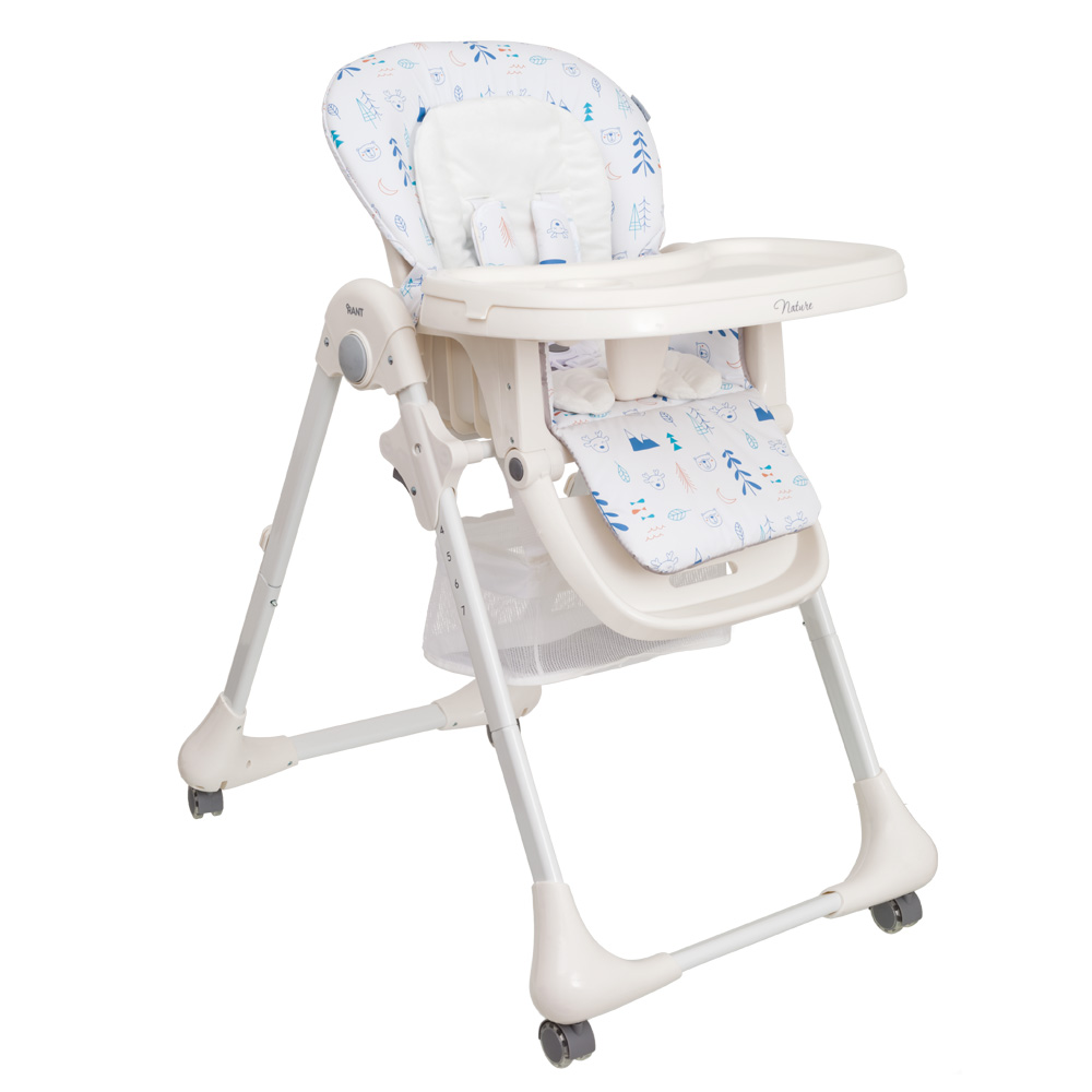 Стульчик для кормления Rant Nature (Рант Натурэ) - стул для кормления ребенка от 6 месяцев до 3-4 лет. Имеет яркий и интересный дизайн. Такая модель обязательно понравится ребенку и украсит любой интерьер. Стул имеет вместительные размеры и 3 наклона спинки, в том числе удобный наклон для отдыха. Основной чехол выполнен из водоотталкивающих материалов, дополнительный матрасик из более дышащих натуральных тканей. Простые регулировки помогут подстроить стульчик под себя. Для удобного перемещения по квартире предусмотрены колесики со стопорами. Для удобного хранения столик можно фиксировать на задних ножках стула. Сам стул компактен и не занимает много места.