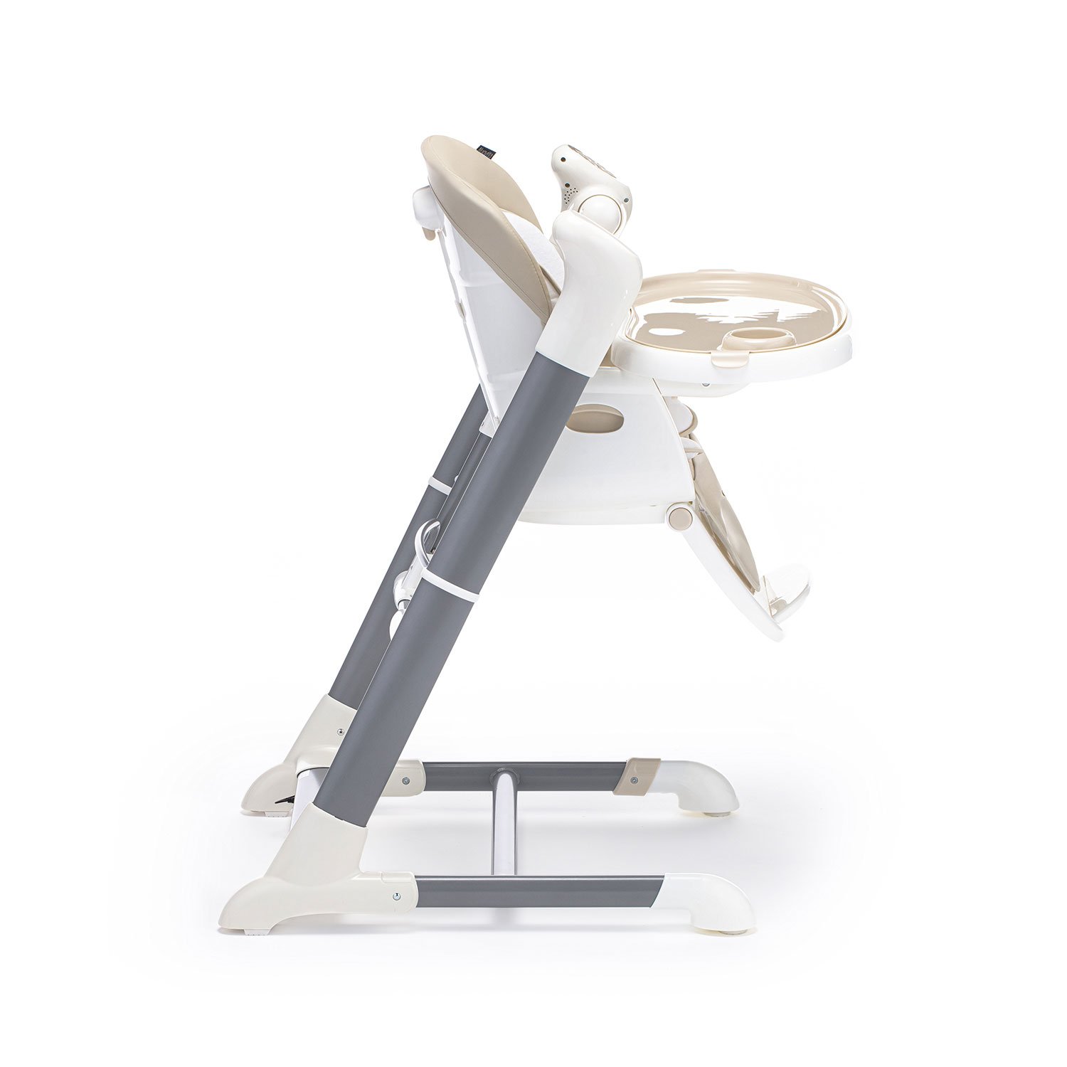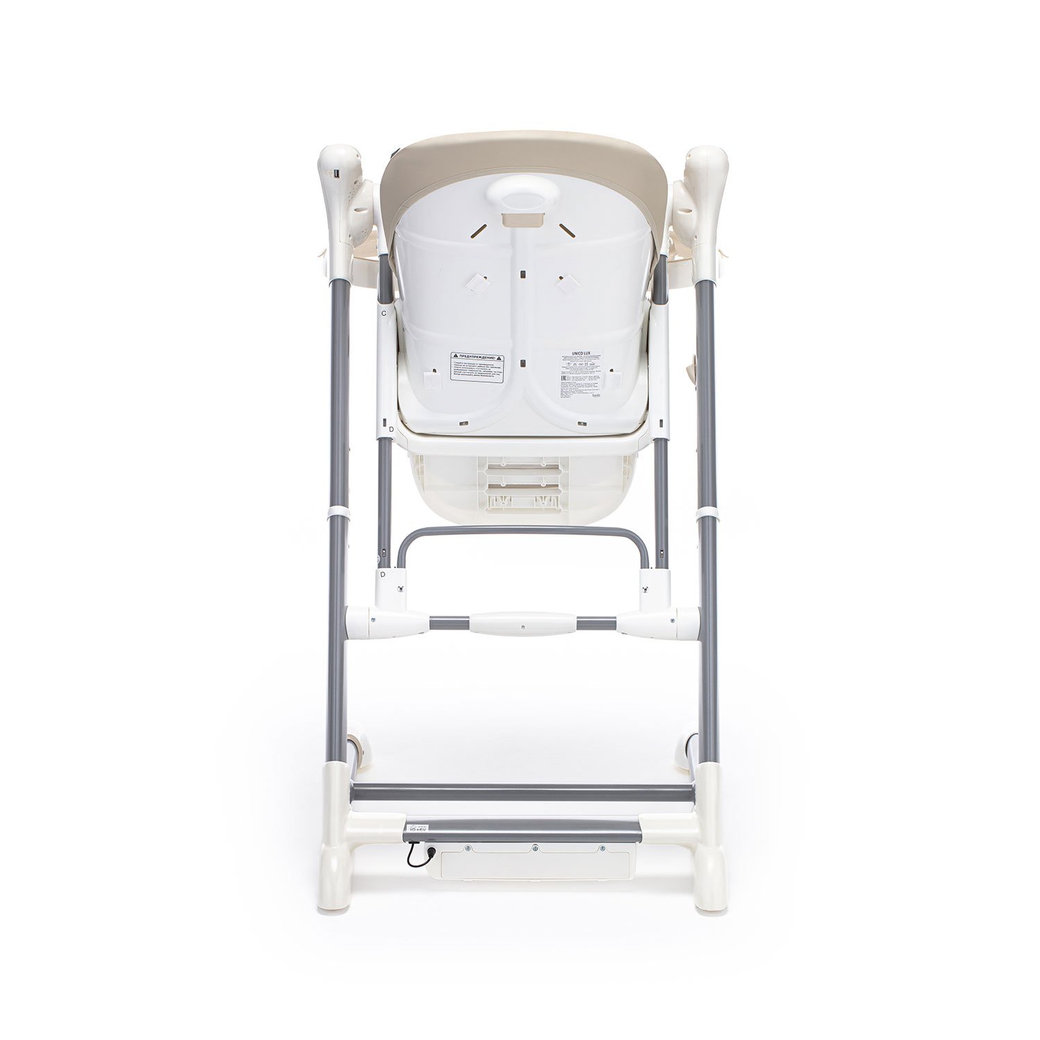 - Наклон спинки и уровень подножки можно менять, чтобы удобно уложить малыша в шезлонге или усадить за столом.