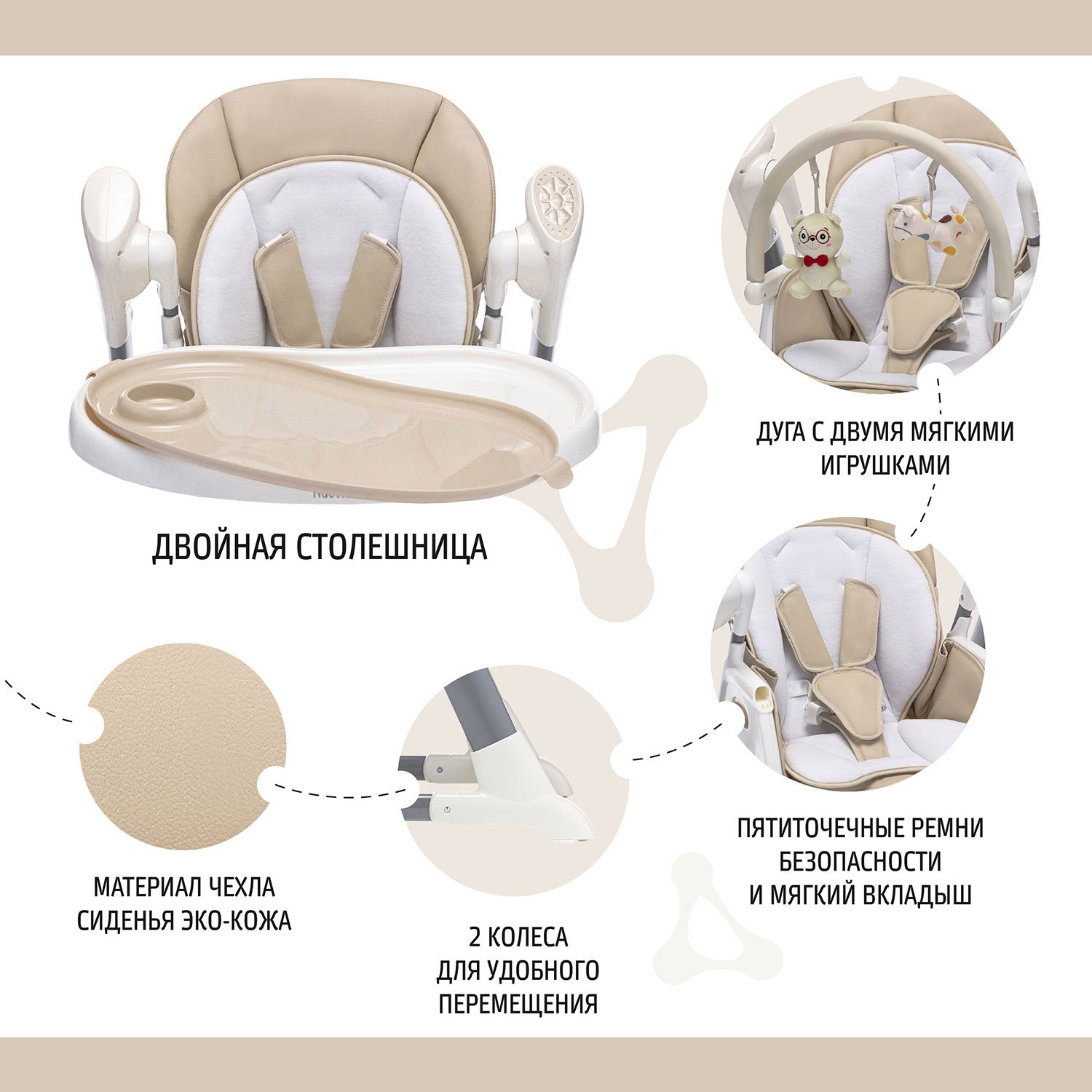 - Максимальная нагрузка: электрокачели до 9 кг, стульчик для кормления (трансформер) до 18 кг. (от 0 до 3 лет)