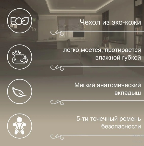Сидение стульчика выполнено из качественной эко-кожи, которая очень легко моется