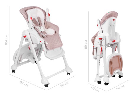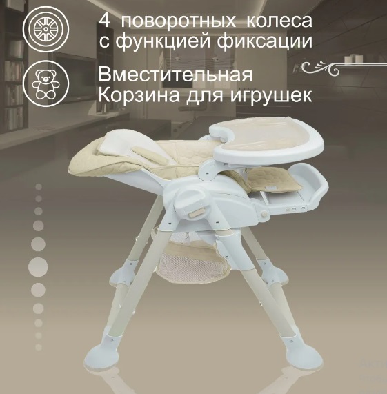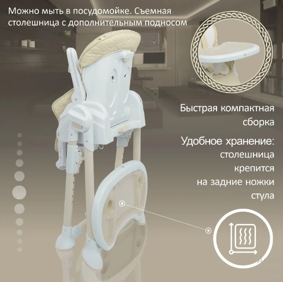 Дополнительными преимуществами для владельцев станут такие приятные детали, как съёмный поднос с углублениями для чашек и бутылочек; корзинка для игрушек; поворотные колеса с надежной фиксацией и возможность хранения в сложенном виде без посторонней опоры.