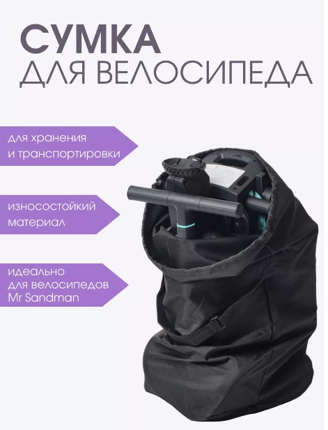 Сумка-чехол Mr Sandman (мистер сандман) - Универсальная сумка-чехол-переноска является идеальным решением для удобной, компактной и безопасной транспортировки и хранения детского трехколесного складного велосипеда. Благодаря ей вы сможете легко поместить велосипед в багажник автомобиля или в шкаф для хранения, а также взять его с собой во время отдыха на море или перелета в багаж самолета. Сумка оснащена прочными ручками, которые надежно усилены стропой, охватывающей всю поверхность чехла. Ее размеры составляют 70 см в высоту, в 55 см в диаметре. Изготовлена она из износостойкого полиэстра. После поездки вы можете легко сложить велосипед в сумку и спокойно пройти с ним в транспорт, дом, офис, кафе или магазин. Благодаря данной сумке, у вас также есть возможность хранить в ней запчасти и детали для велосипеда. Этот удобный аксессуар является надежным способом переноски и хранения трехколесного детского велосипеда-коляски. Отныне вы можете быть уверены, что ваш велосипед всегда будет в безопасности и всегда под рукой благодаря этой сумке чехлу.