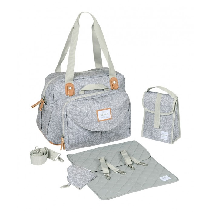 Сумка для мамы Beaba Chang Bag Geneva 2 (Беаба) - вместительная и невероятно функциональная сумка для прогулок с маленьким ребенком. Большая комплектация. Сумку можно нести за ручки, фиксировать на ручке чемодана, крепить на коляску.