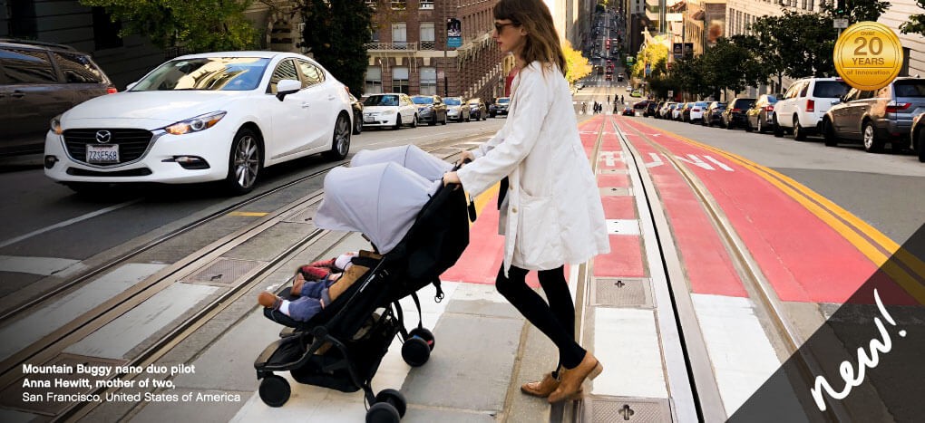 Mountain Buggy Nano Duo удивит вас легкостью управления, удобным заездом на тротуары и удобной сплошной ручкой эргономической формы.