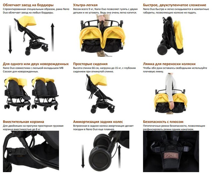 Особенности и преимущества коляски Mountain Buggy Nano Duo: