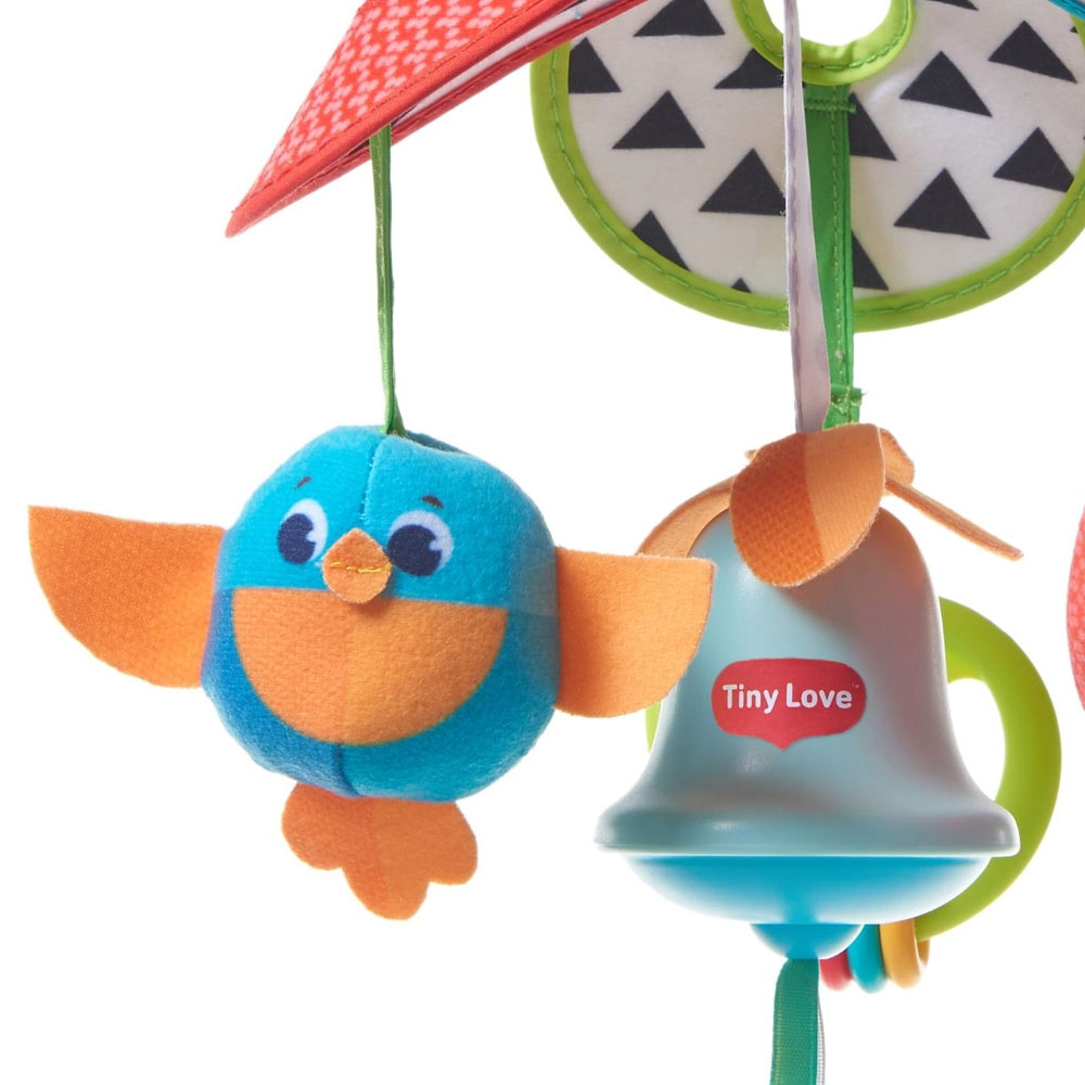 Подвесная игрушка Tiny Love Механический подвес на коляску Солнечная полянка - это очаровательная подвесная игрушка для дома и для прогулок. Стимулирует ощущения ребенка и любознательность. Китайские колокольчики издают приятные звуки при прикосновении. Яркая раскраска привлекает внимание малыша.