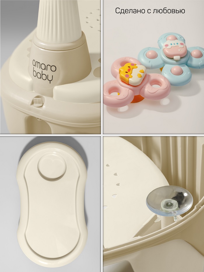 Обеспечивает комфортное положение ребенка во время водных процедур, освобождая руки родителей. Многофункциональная детская машинка имеет четыре поворотных колеса на 360 градусов. Колеса прорезиненные, не будут царапать пол. В каталке есть место для хранения игрушек. Предусмотрены специальные стопперы от опрокидывания. В комплекте идут две игрушки, которые можно закрепить на столике. Толокар для малышей с функцией сиденья для купания – это умное решение для современных родителей. Он подарит ребенку часы веселья, поможет развить моторику и сделает купание более комфортным.