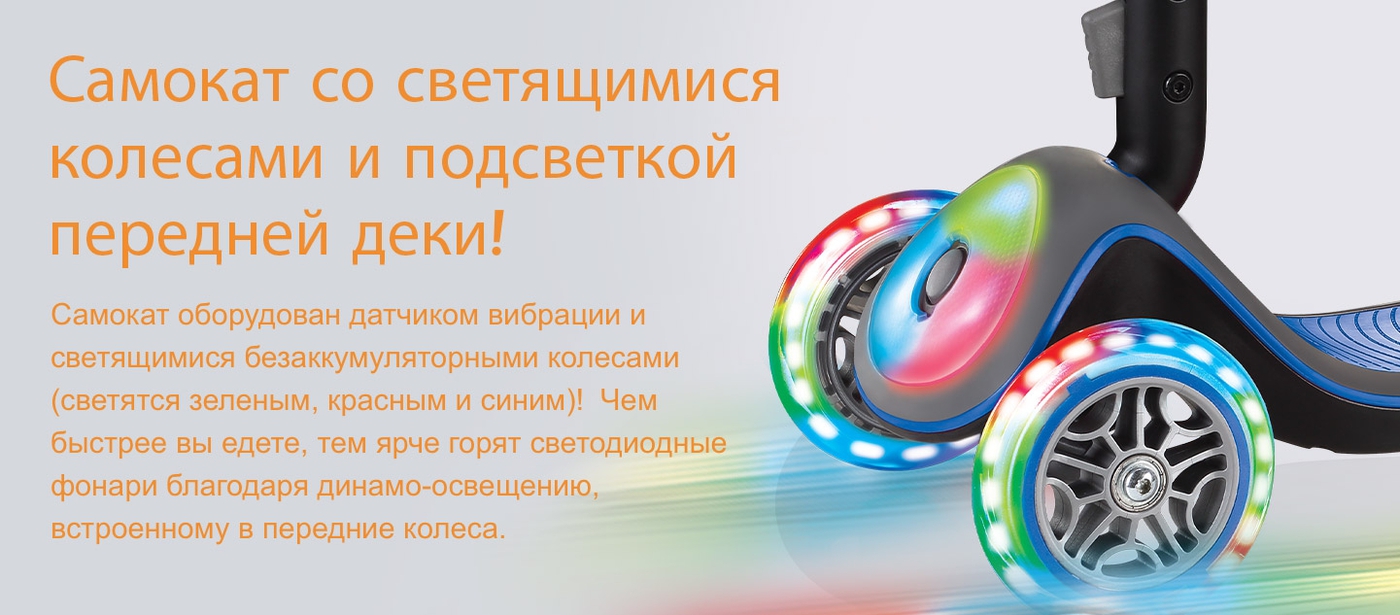 Особенности и преимущества самоката Globber Elite Deluxe Flash Lights :