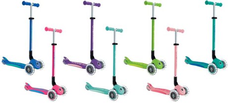 Самокат Globber PRIMO FOLDABLE PLUS LIGHTS V2 (Глоббер примо) - обновленная модель популярного трехколесного самоката для ребенка от 3 до 9 лет. Самокат 2 версии оснастили более широкой декой, белыми LED светящимися колесами, новым зажимом регулировки руля по высоте, обновлёнными грипсами и задним тормозом.