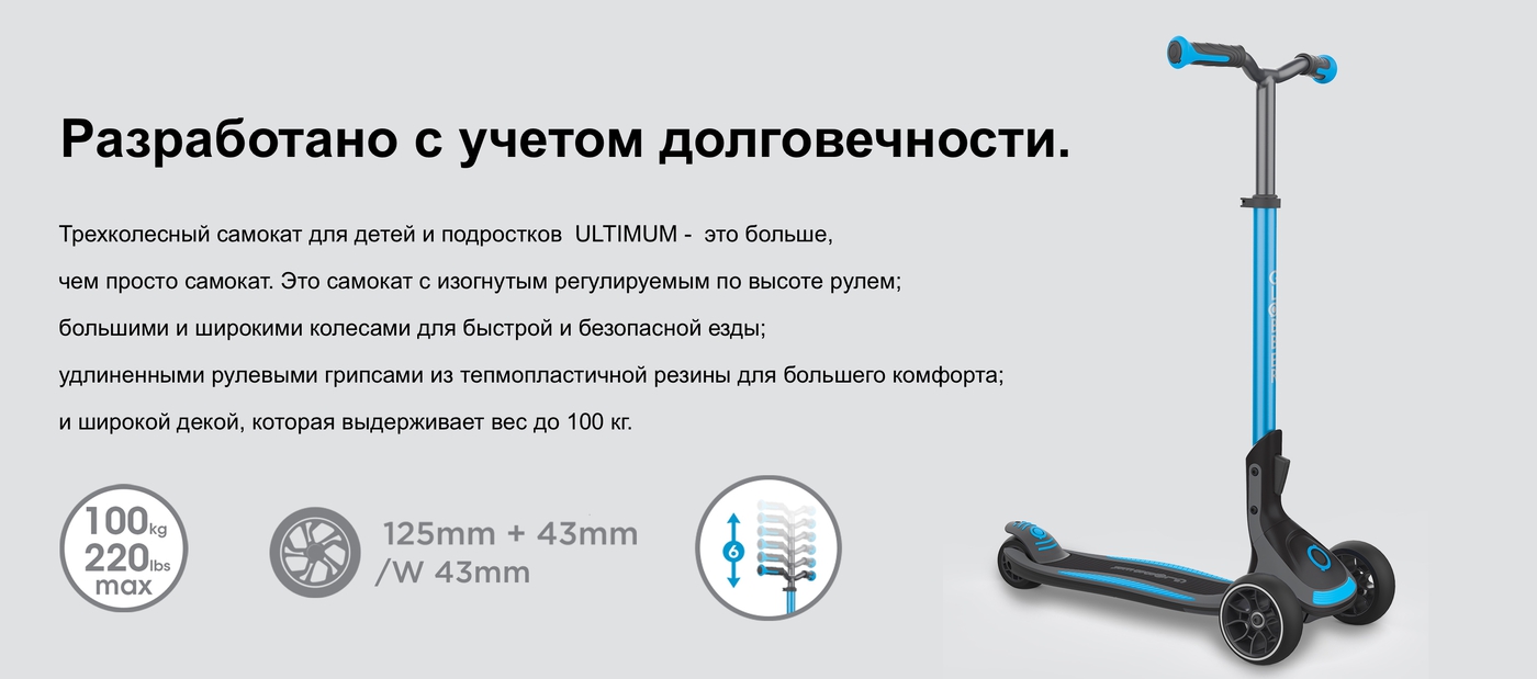 Купить самокат Globber Ultimum (Глоббер Ультимум) в нашем магазине очень просто — Вам достаточно оформить заказ онлайн на сайте или по телефону +8(925)266-83-06. Мы доставим товар в самое короткое время по Москве и Подмосковью (бесплатно до 10 км за МКАД). Так же отправляем в любой город России, в Армению, в Киргизию, в Крым, в республику Беларусь с помощью транспортной компании.