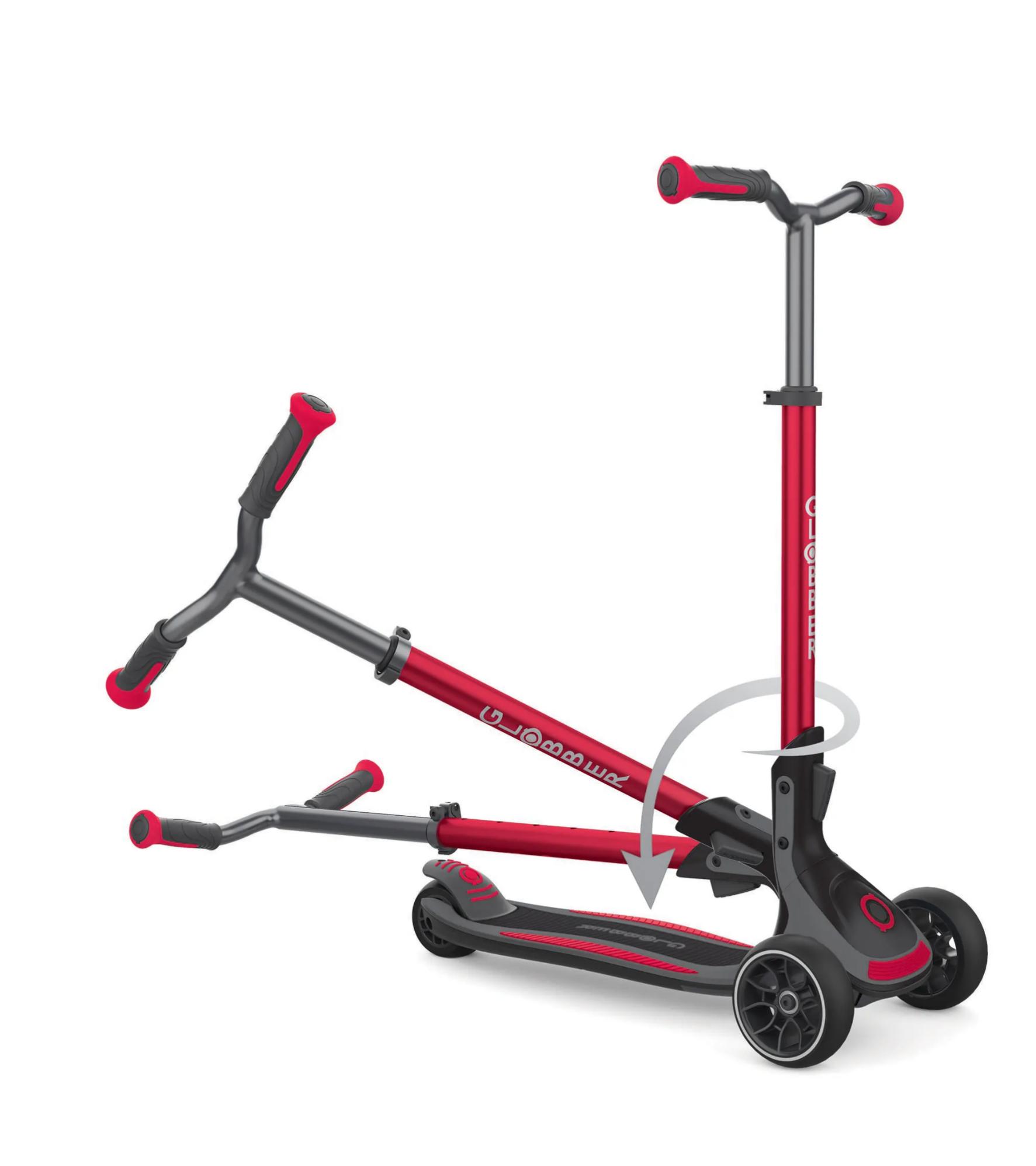 инновационная система складывания. Одно нажатие кнопки, и самокат превращается в компактную тележку;