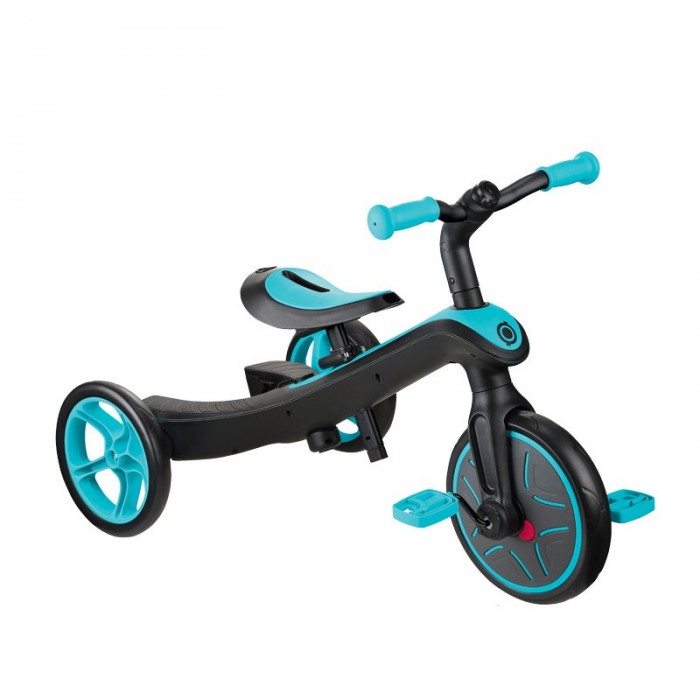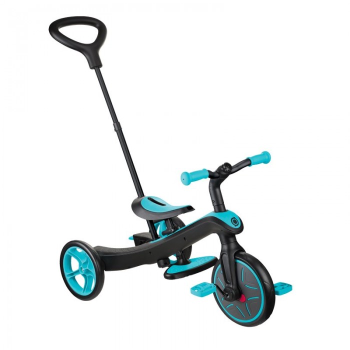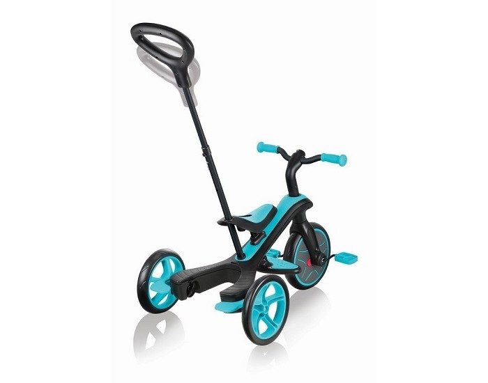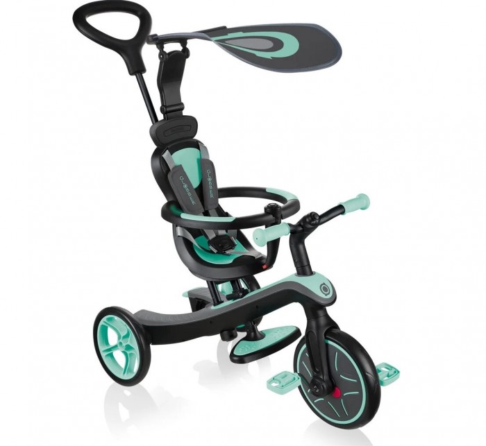 Трехколесный велосипед - беговел Globber Trike Explorer 4 в 1 (глоббер трайк эксплорер) - современный транспорт, который обязательно понравится ребенку от года до 4 лет. Эта уникальная модель сочетает в себе сразу 4 продукта, который сделают прогулку более интересной и удобной. Для совсем маленьких предусмотрен велосипед с ручкой управления, капюшоном и защитными бортиками. В дальнейшей велосипед меняется под уже подросшего ребенка, и уже сам ребенок сможет крутить педали и управлять своим транспортом. Когда велосипед надоест или станет не актуальным, его за считанные минуты можно превратить в полноценный устойчивый беговел.