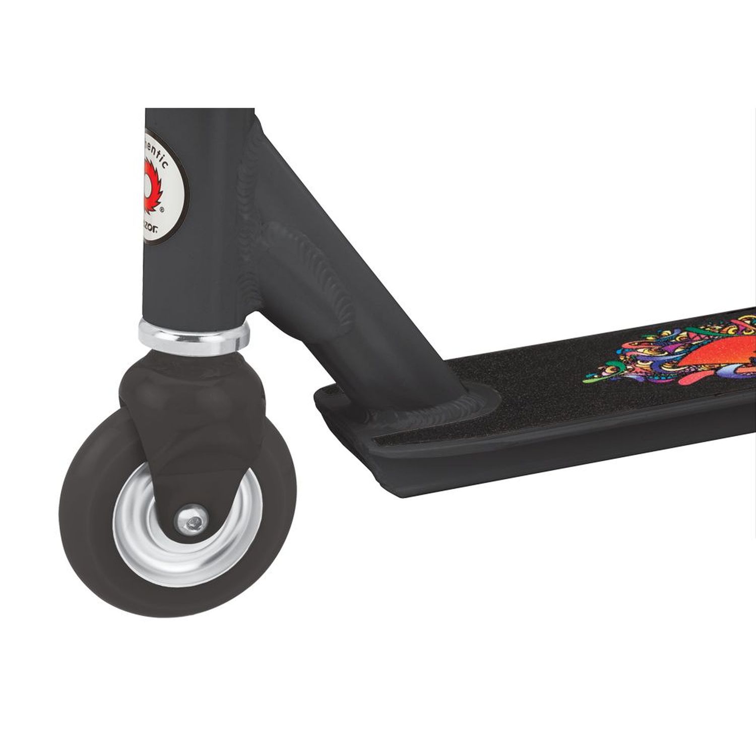 Трюковый самокат Razor Beast V5 (рейзер бист в5) - грозный чёрно-красный зверь пятого поколения в линейке Razor. В трюковом самокате стильный руль Y-формы, прочная стальная дека, надёжные сварные швы, рулевой хомут на 4 болтах, полиуретановые литые колёса на пластиковом диске диаметром 100 мм.