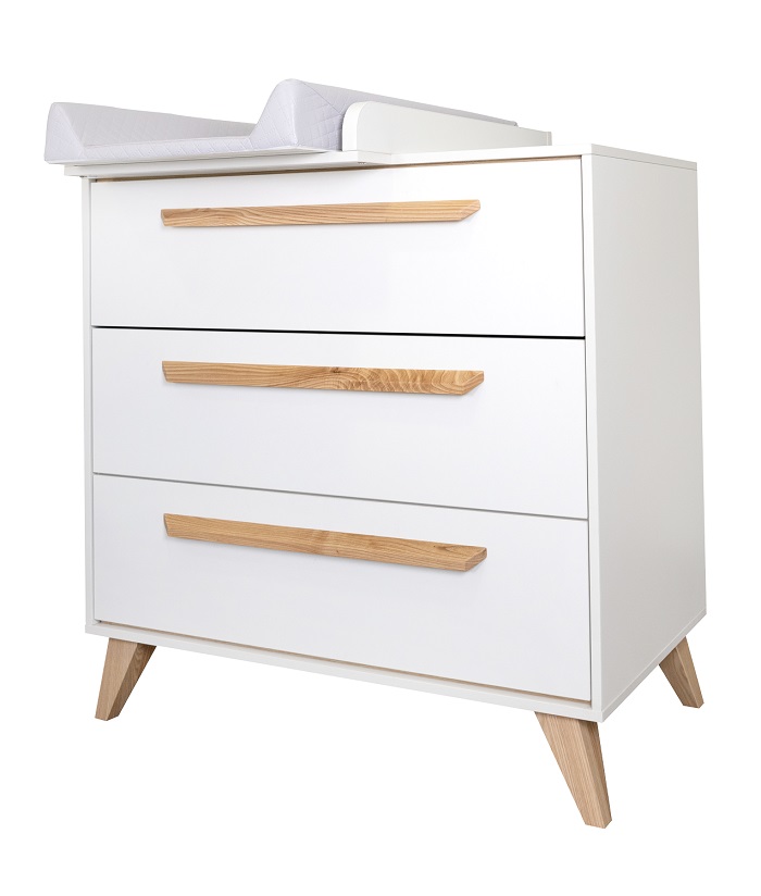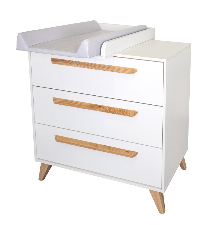Тумба (комод) Ikid Lazio с пеленальной доской - стильный и функциональный предмет мебели для детской комнаты. Поможет удобно организовать хранение детских вещей и косметики. Съемная пеленальная поверхность поможет маме переодевать ребенка на удобной для нее высоте, проводить для малыша все необходимые гигиенические процедуры, воздушные ванны, массаж. Когда пеленальный столик станет не актуальным, он легко снимается, а комод станет обычным бельевым. Комод оснащен тремя вместительными ящиками.