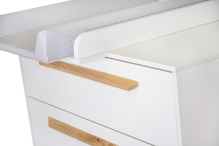 - Съемная пеленальная поверхность. Простое крепление. Не оставляет следов на комоде.
