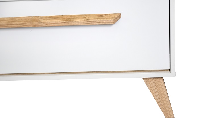 Благодаря достаточно лаконичному дизайну и сочетанию белого цвета и элементов в натуральном цвете комод прекрасно впишется практически в любой дизайн. Он подойдет в детскую комнату, гостиную, спальню.