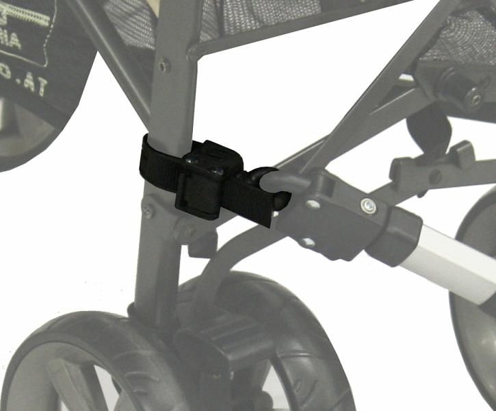 Универсальное крепление позволяет прикрепить подставку к любой коляске с любой рамой.