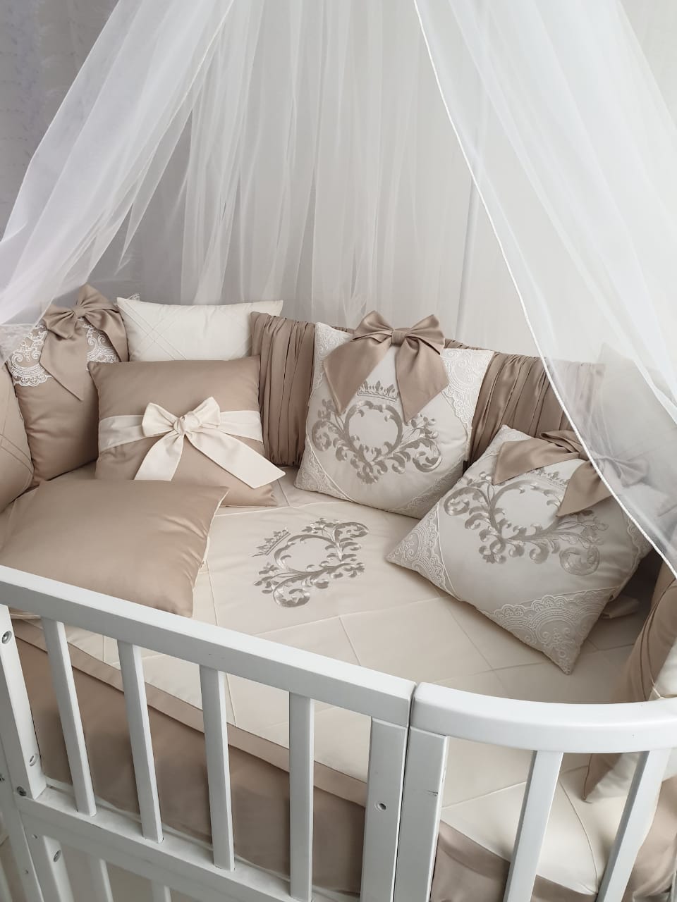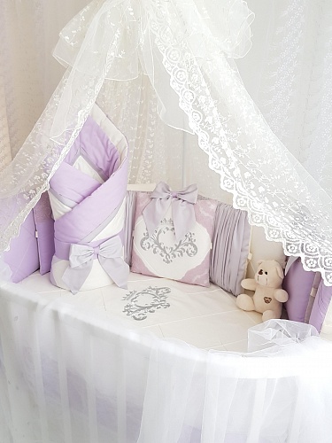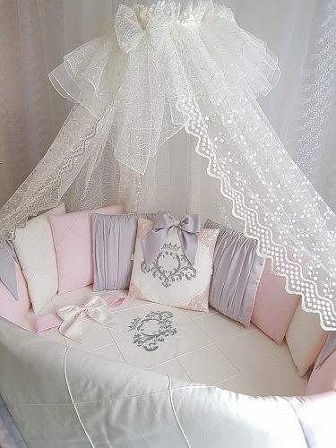 - Дополнительно можно заказать к комплекту: балдахин, одеяло на выписку 1х1 метр, валик.