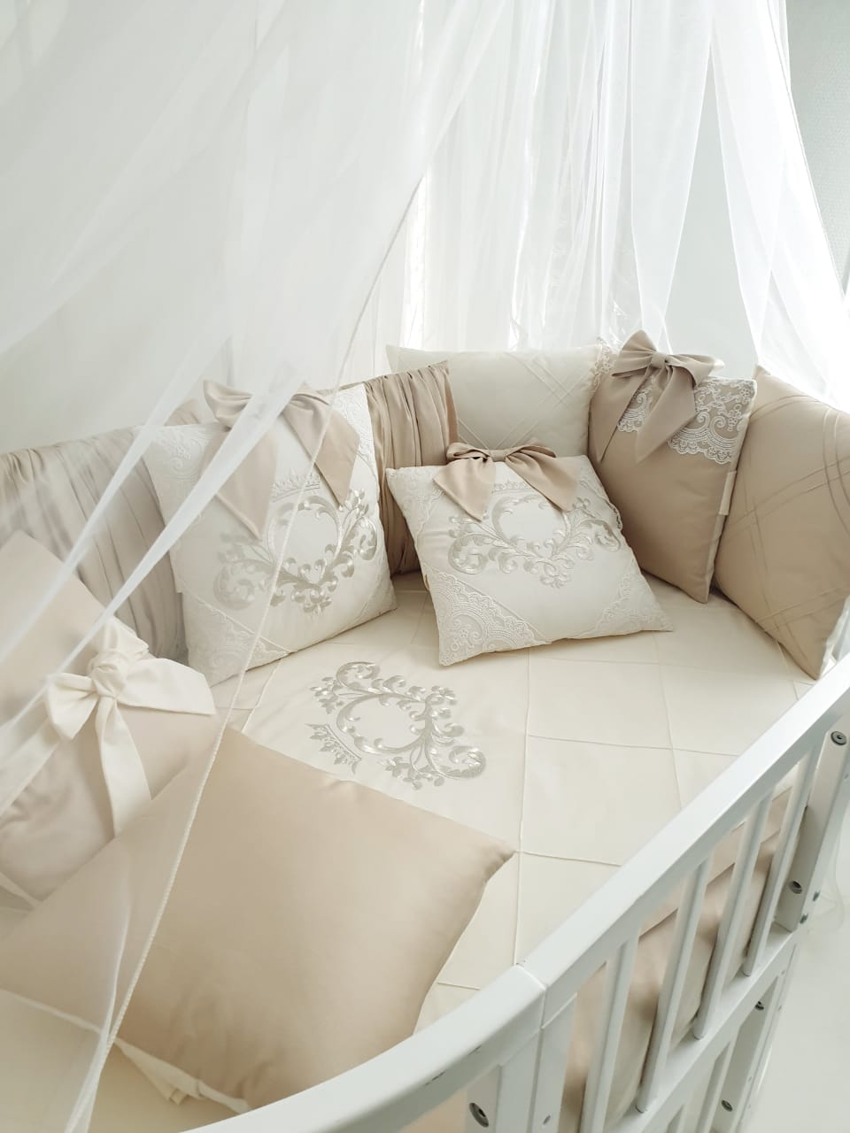 - Бортовые подушки для круглой и овальной кроватки 11шт