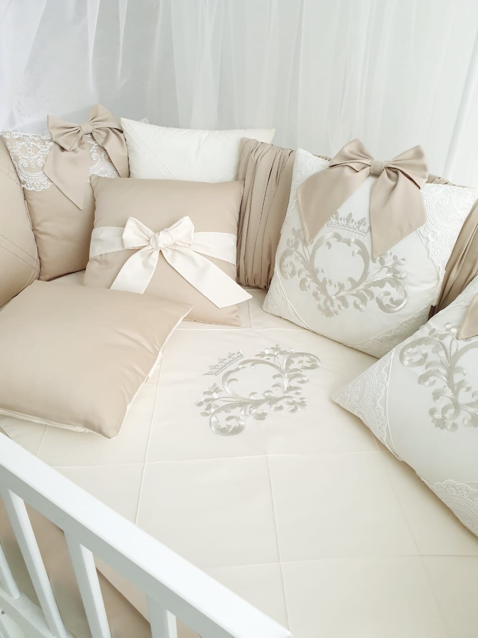 - Дополнительно можно заказать к комплекту: балдахин, одеяло на выписку 1х1 метр, валик.