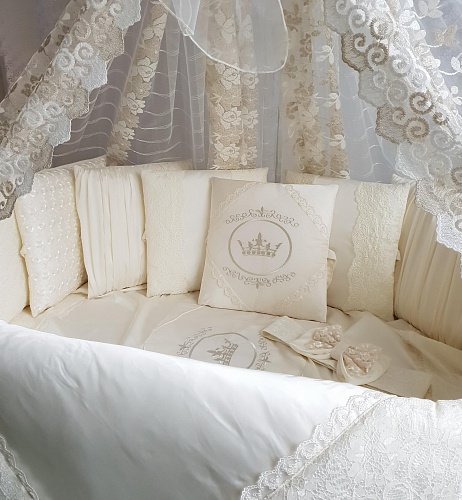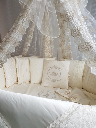 Универсальный набор в кроватку Ecoline BENITA Light 2020 (Эколайн Бенита Лайт ) - набор для любой кроватки размерами 120х60 см и 125х65 см. Идеально подойдет для круглой, овальной, прямоугольной модели. Модель выполнена из качественного сатина и украшена кружевом и органзой. Бортики со съемными чехлами имеют разный дизайн, что позволит маме украшать кроватку по своему усмотрению. Наполнитель бортиков -современный материал Опенформ, который не теряет форму, безопасен для малыша и быстро сохнет.