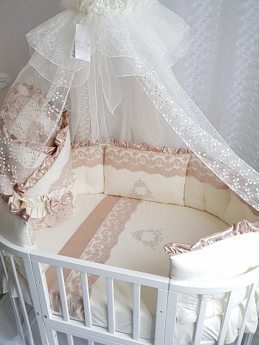 Особенности и преимущества набора в круглую кроватку Ecoline Margaret crem: