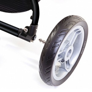 Большие колеса из мягкой резины, полеуритан. Не прокалываются и не гремят.