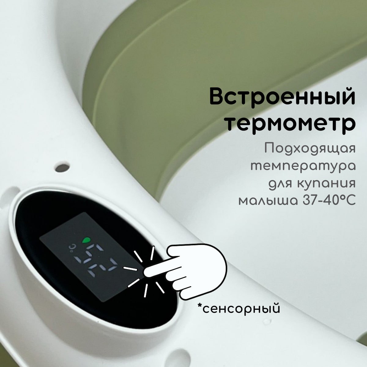 Ванночка оборудована встроенным водонепроницаемым сенсорным термометром, который обеспечивает безопасность, позволяя максимально точно определить температуру воды: просто опустите датчик в ванночку и коснитесь сенсорного экрана. Благодаря электронному термометру вы всегда сможете подобрать оптимальную температуру воды для комфортного купания малыша.