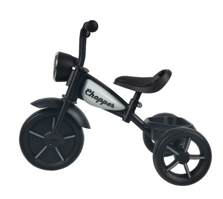 Велосипед Chopper (Чопер) - трехколесный велосипед для ребенка от 2-3 лет. Предназначен для самостоятельного катания ребенка. Эргономическое мягкое сидение регулируется по высоте. Красивый удобный руль, выполненный в стилистике мотоцикла – чопера, украшен большой фарой с музыкой и светом. В задней части велосипеда предусмотрена удобная корзина для игрушек. Стильное оформление велосипеда обязательно понравится вашему ребенку и станет прекрасным подарком на любой праздник.