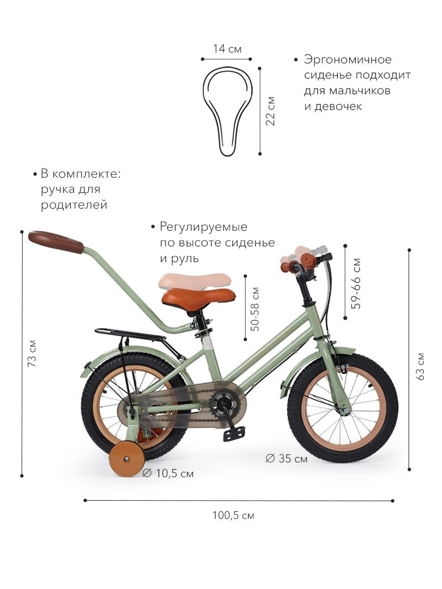 - Диаметр колес 14 дюймов
