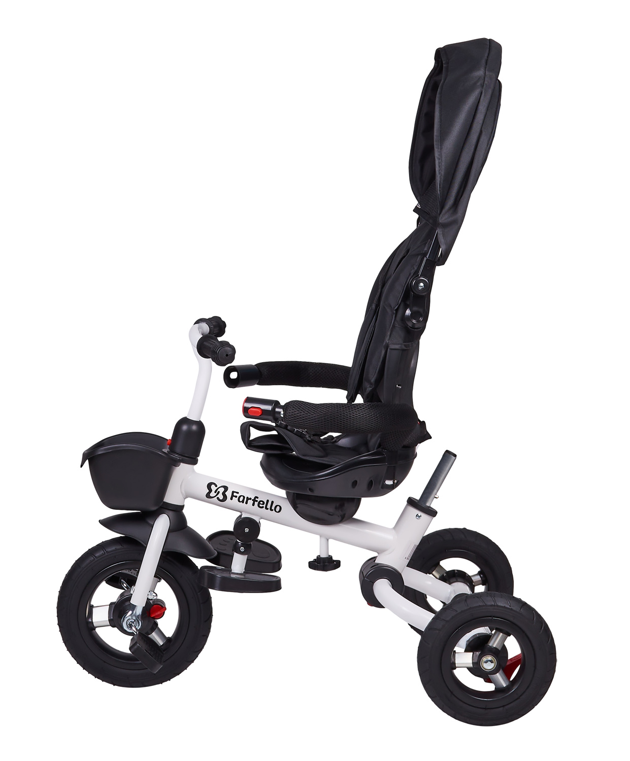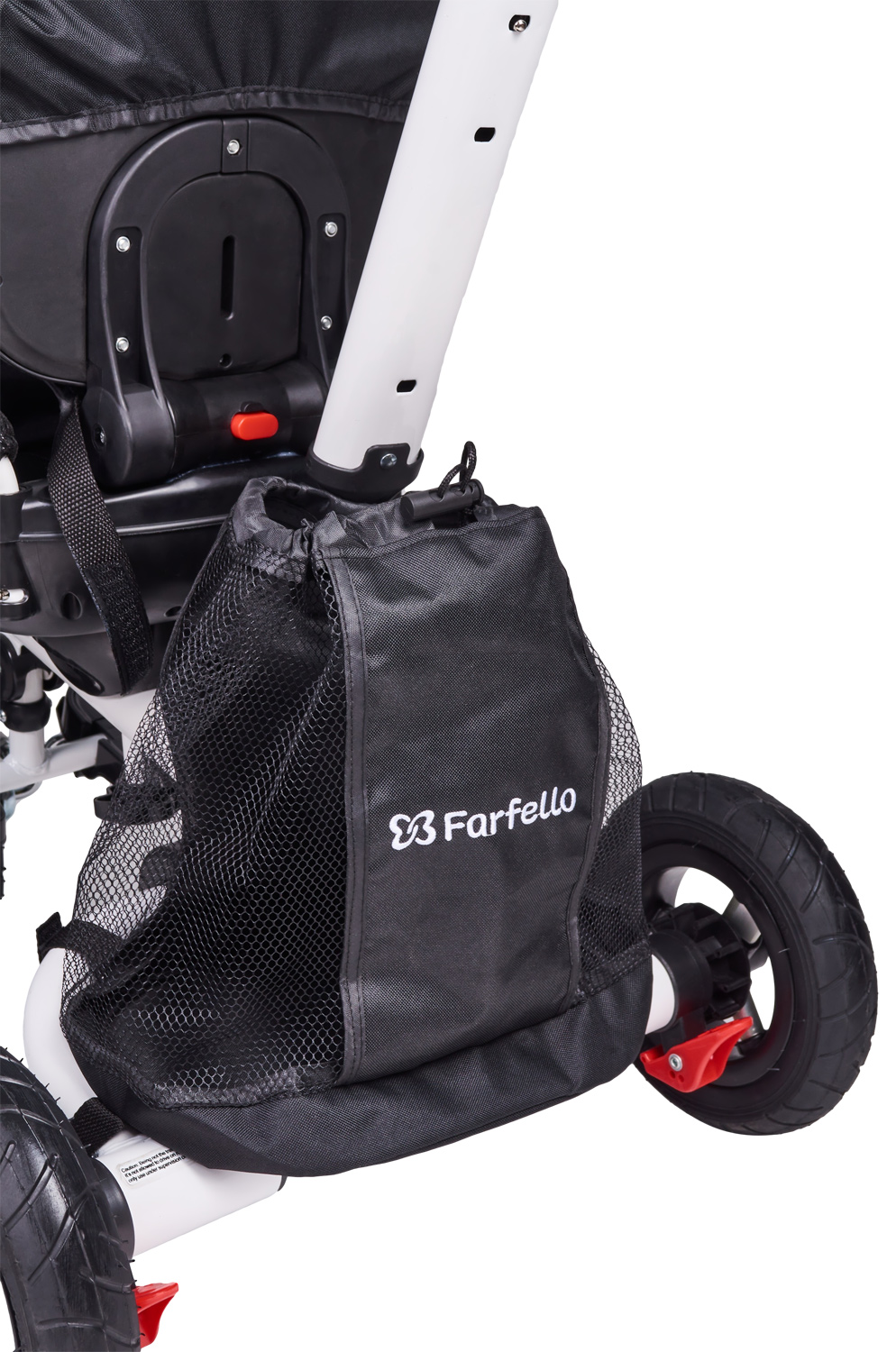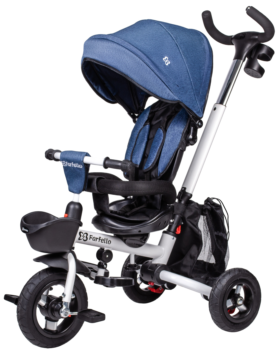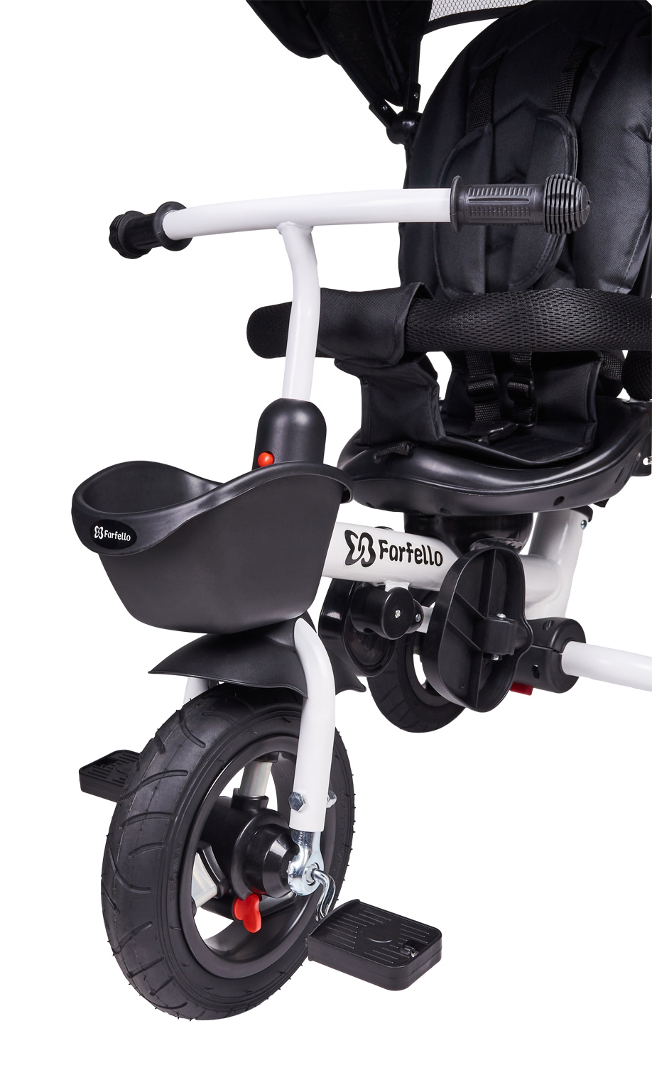 Велосипед Farfello S-01 (Фарфелло) - детский складной велосипед для прогулок с ребенком от 10 месяцев. Farfello S-01 это почти коляска для летних прогулок по городу: наклон спинки, капюшон для защиты ребенка от непогоды или яркого солнца, мягкое сидение, 5-ти точечные ремни безопасности с защитным бампером. Велосипедом может управлять сам ребенок, или родители с помощью удобной регулируемой ручки. Для игрушек предусмотрена небольшая корзинка на руле велосипеда и сумка-рюкзак. Для поездок на машине велосипед удобно складывается.