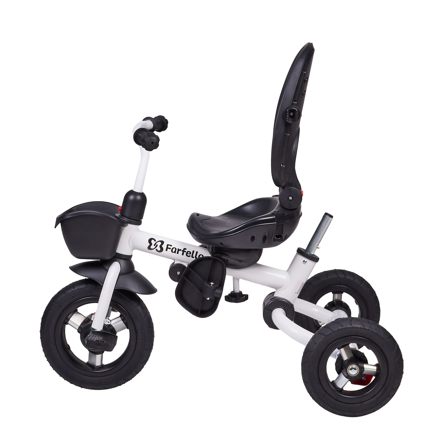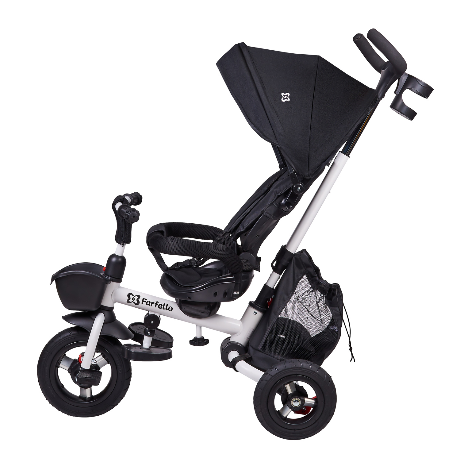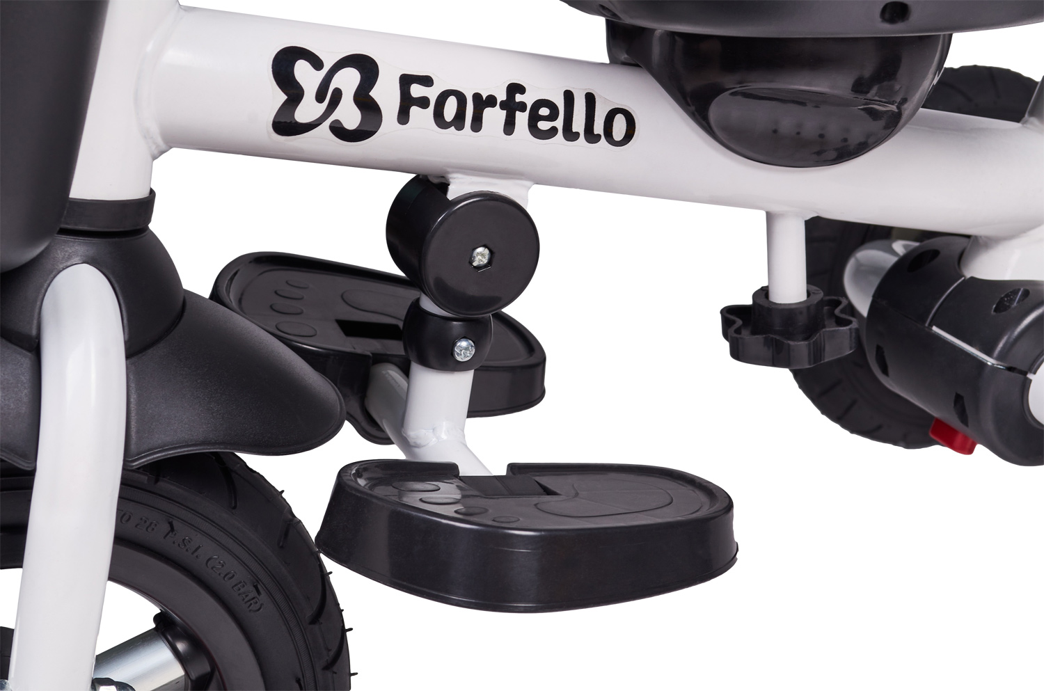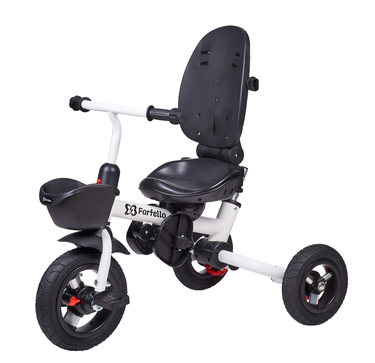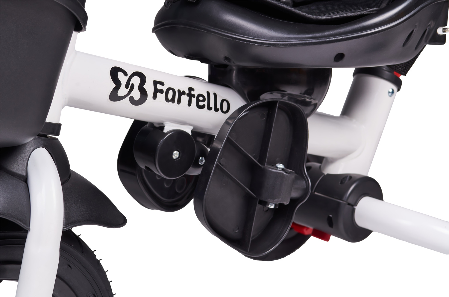 Велосипед Farfello S-01 (Фарфелло) - детский складной велосипед для прогулок с ребенком от 10 месяцев. Farfello S-01 это почти коляска для летних прогулок по городу: наклон спинки, капюшон для защиты ребенка от непогоды или яркого солнца, мягкое сидение, 5-ти точечные ремни безопасности с защитным бампером. Велосипедом может управлять сам ребенок, или родители с помощью удобной регулируемой ручки. Для игрушек предусмотрена небольшая корзинка на руле велосипеда и сумка-рюкзак. Для поездок на машине велосипед удобно складывается.